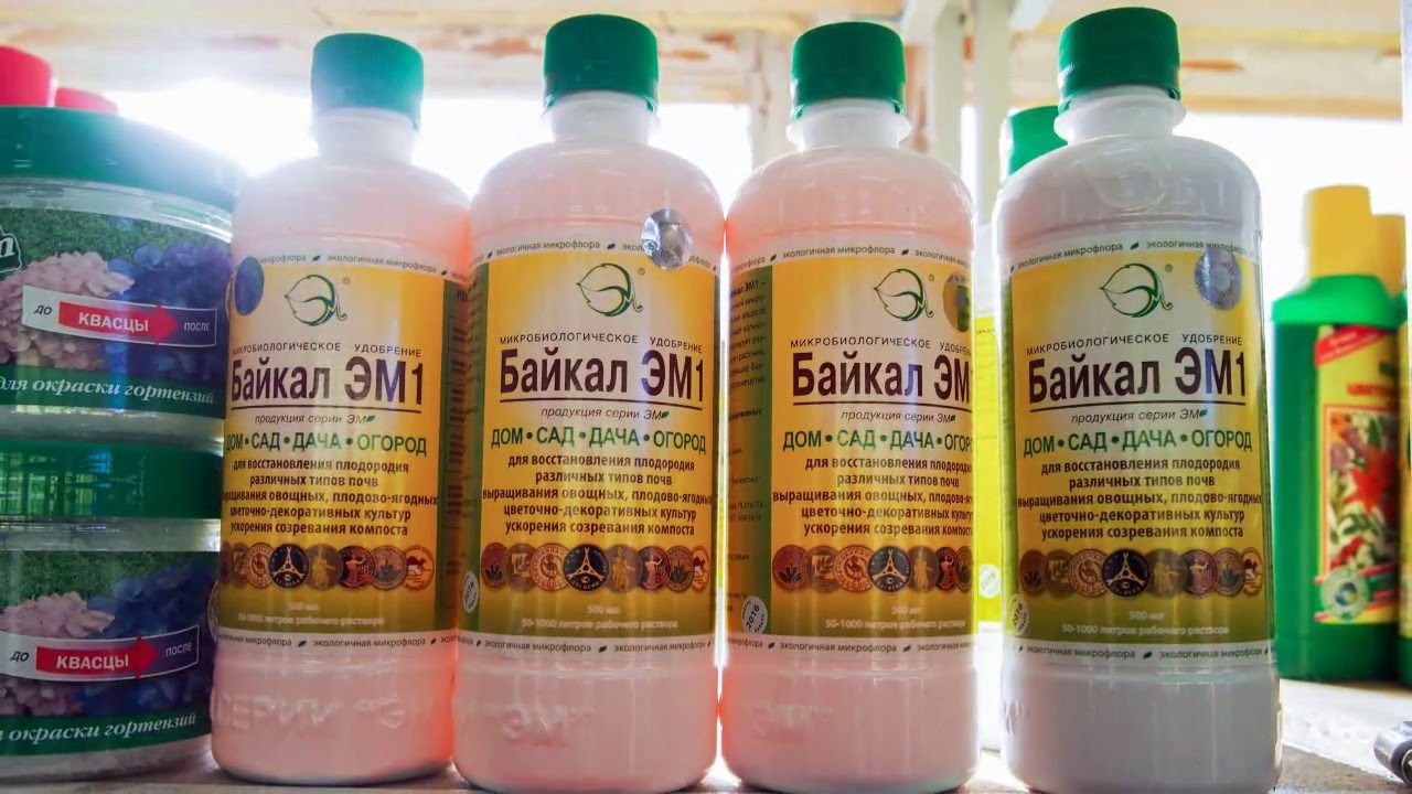 Biologiske preparater av merkevaren Baikal-EM1 er immunstimulerende midler og motgift. Brukes til å behandle hageavlinger gjennom sprøyting. For å tilberede en løsning, bør du blande 10 ml av stoffet med 10 liter vann. Prosedyren bør utføres i hagen minst 3 ganger gjennom vekstsesongen.