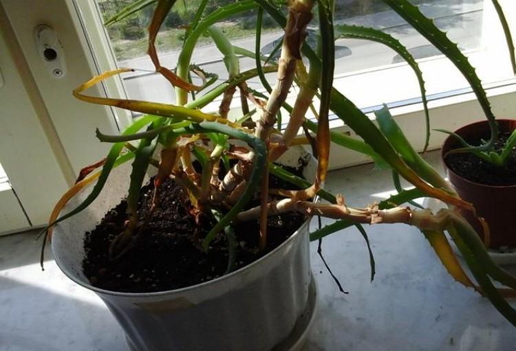 Råtne røtter blir kuttet og fjernet, sunne er drysset med svovel. Planten transplanteres i jord, hvorav de fleste består av sand. Etter transplantasjon anbefales det å vanne aloe etter 3 uker.