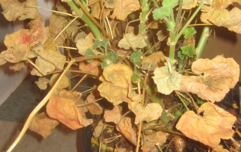 Sykdommer i geranium, geraniumblader blir gule og tørre - hva skal jeg gjøre?