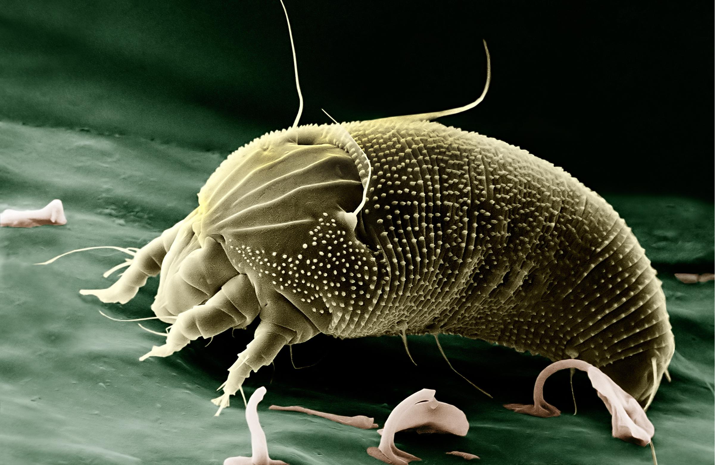 Som nevnt ovenfor er voksne bare små, så det er ganske vanskelig å se dem. Fargen er hvit, men når høsten nærmer seg, skifter den til lysebrun eller rosa. To par ben lar deg bevege deg ganske raskt (på grunn av størrelsen) på jakt etter mat.
