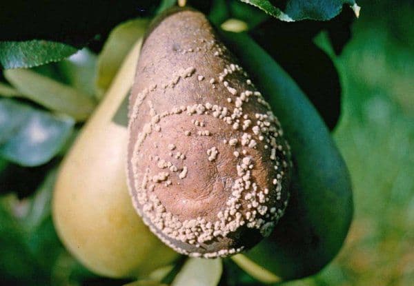 Moniliose kan raskt spre seg fra pærer til andre hagebruk. Soppen påvirker trær som vokser tett i upassende hager. Direkte sollys dreper soppsporer. Hovedtegnet er at frukten råtner ovenfra, deretter innvendig, helt dekket først med svarte prikker, deretter med en brun blomst med vekster.