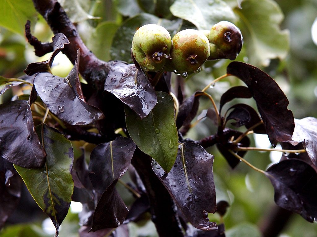 På pæren kan frukt lide av sykdommer.