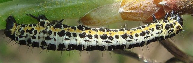 Som i tilfelle brann, før og etter sesongen, må du forsiktig grave opp jorden, omtrent 15 centimeter. Om sommeren blir larvene ristet av bladene og legger en film under busken. Insekter ødelegges av kokende vann.