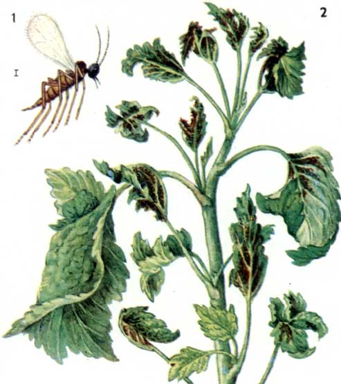 Gallmugg er små mygg som legger larvene sine inne i bushen. Helt fra begynnelsen av våren legger myggen larvene på de yngste bladene. Gallmugg er skyte og blad. Som navnet antyder, skiller de seg ut på stedet der larvene legges.Blad som er rammet av insekter blir tørre og rynker seg gradvis, fordi de mister juice. Grenene som er berørt av en annen avdeling, vil være tørre og sprø til høsten.