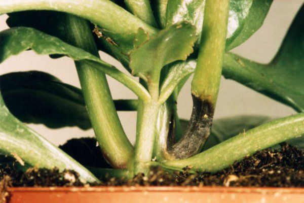 Når en plante er rammet av denne sykdommen, begynner stammen å mørkne og tørke, bladene blir vanne og klebrige. Hvis du ikke gjør noe, vil blomsten tørke ut etter en stund. Den aller første handlingen som må tas i tilfelle Kalanchoe-stamråte er å måle temperaturen på vannet som brukes til å vanne planten. Lave temperaturer på vann og luft fremkaller stammeråte, for å si det enkelt, Kalanchoe er frossen. Det er mulig å kvitte seg med sykdommen bare i de tidlige stadiene.Hvis stammen er fullstendig skadet, er det ikke mulig å redde blomsten.