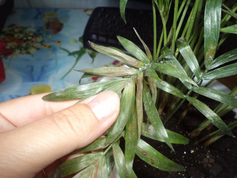 Chamedorea blomst - blader tørre, hva du skal gjøre