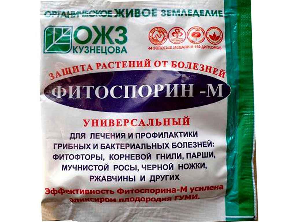 - Fitosporin - i sammensetningen av levende sporer og celler. Skilt i henhold til instruksjonene, påført en gang hver 14. dag.