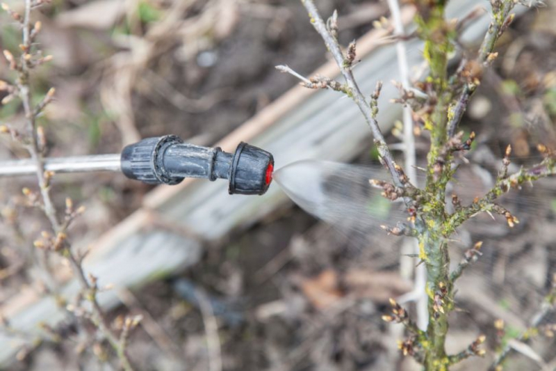 - Varmt vann. Før snøen smelter, blir stikkelsbærbusker og bakken rundt dem vannet med kokende vann.