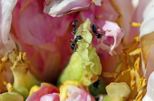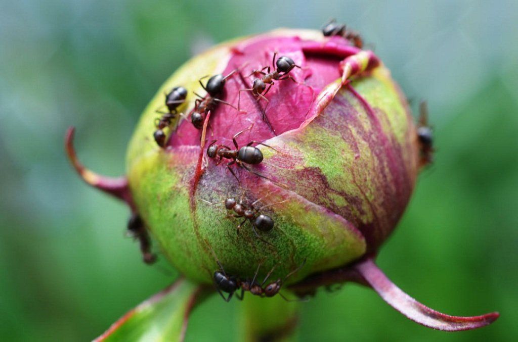 Maur på knoppene til pioner vises bare der gunstige forhold er skapt for dem. Tilstedeværelsen av mat og et skjermet sted fører til aktiv vekst av kolonien.