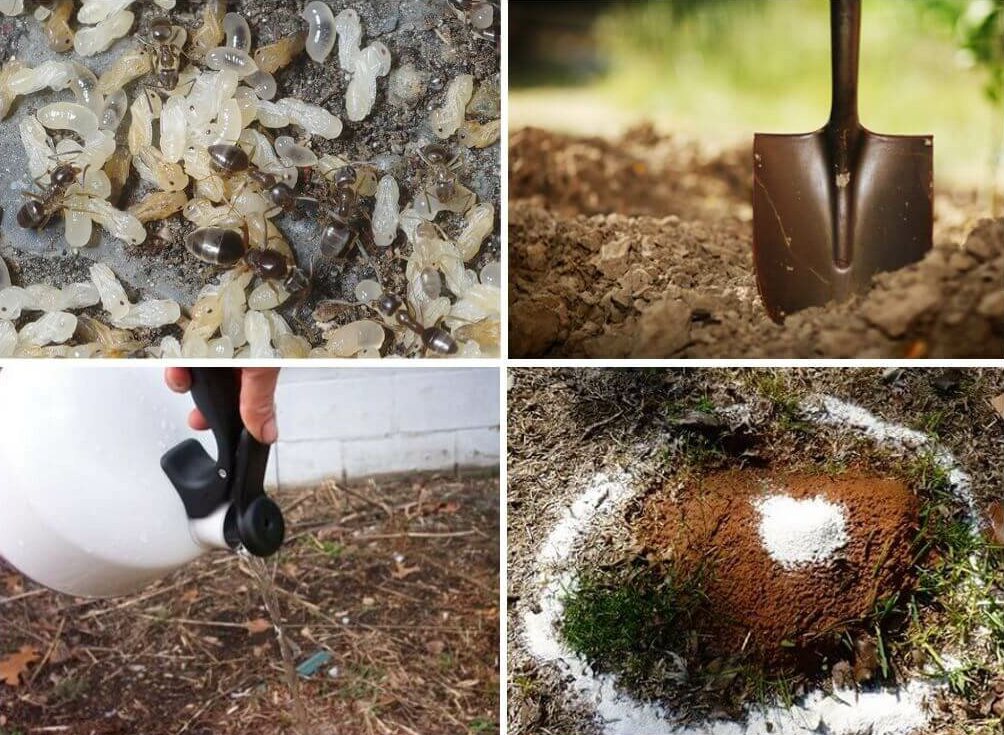 Ødeleggelsen av en maurtue skjer i flere trinn: