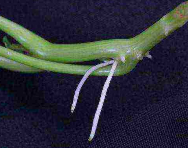 Etter utseendet til rotskudd plantes stiklingene i en blanding av sand og torv, og regelmessig vanning fortsetter. Gradvis tilsettes næringsrik jord og komplekse gjødsel i pottene, slik at utviklingen av stikkes rotsystem kan utvikles.