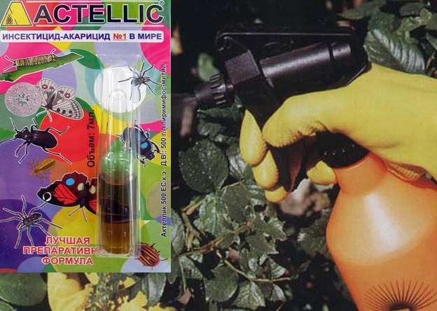 - Actellic. Et pålitelig verktøy for å kvitte seg med skadedyr. Sprøyting av den berørte vegetasjonen utføres annenhver uke.Manipulasjonen utføres i frisk luft ved hjelp av personlig verneutstyr. Når den berørte lesjonen når stor størrelse, anbefales det å dekke blomsterpotten etter bearbeiding med en plastpose.