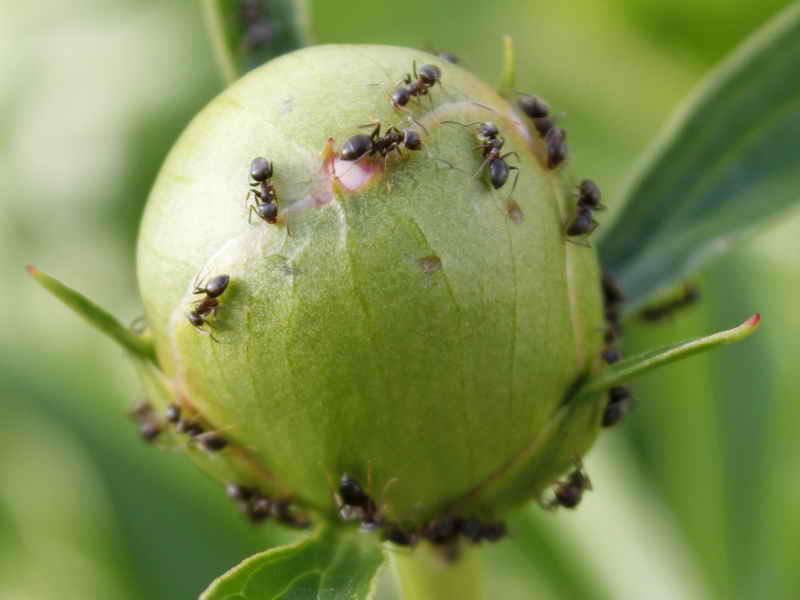 Peony knopper skiller ut sukker sirup. Denne funksjonen tiltrekker seg maur som nyter planten med glede. Insekter drikker ikke bare sirupen, men spiser også bladplatene. De begynner å tørke ut. For å takle dem behandles jorden nær peoner og bladplater med et frastøtende middel.