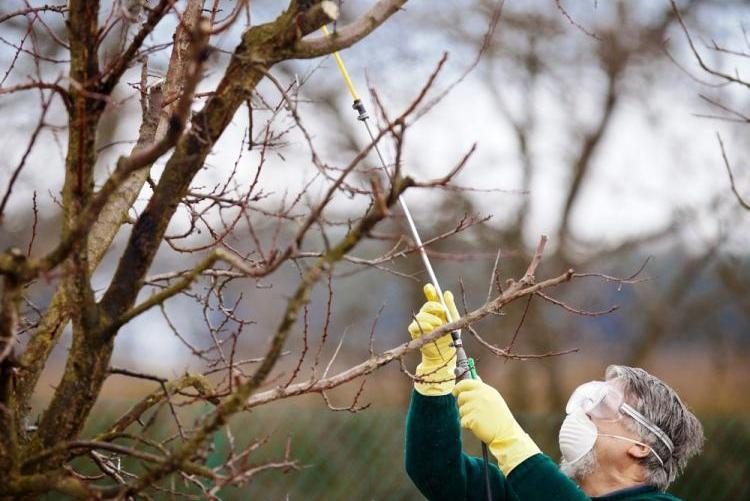 Rengjøring begynner etter at bladene faller: det akkumulerte avfallet fjernes, koffertene klargjøres og hvitkalkes. På høsten kan du spraye hagen etter at området og koffertene er fullstendig rengjort.
