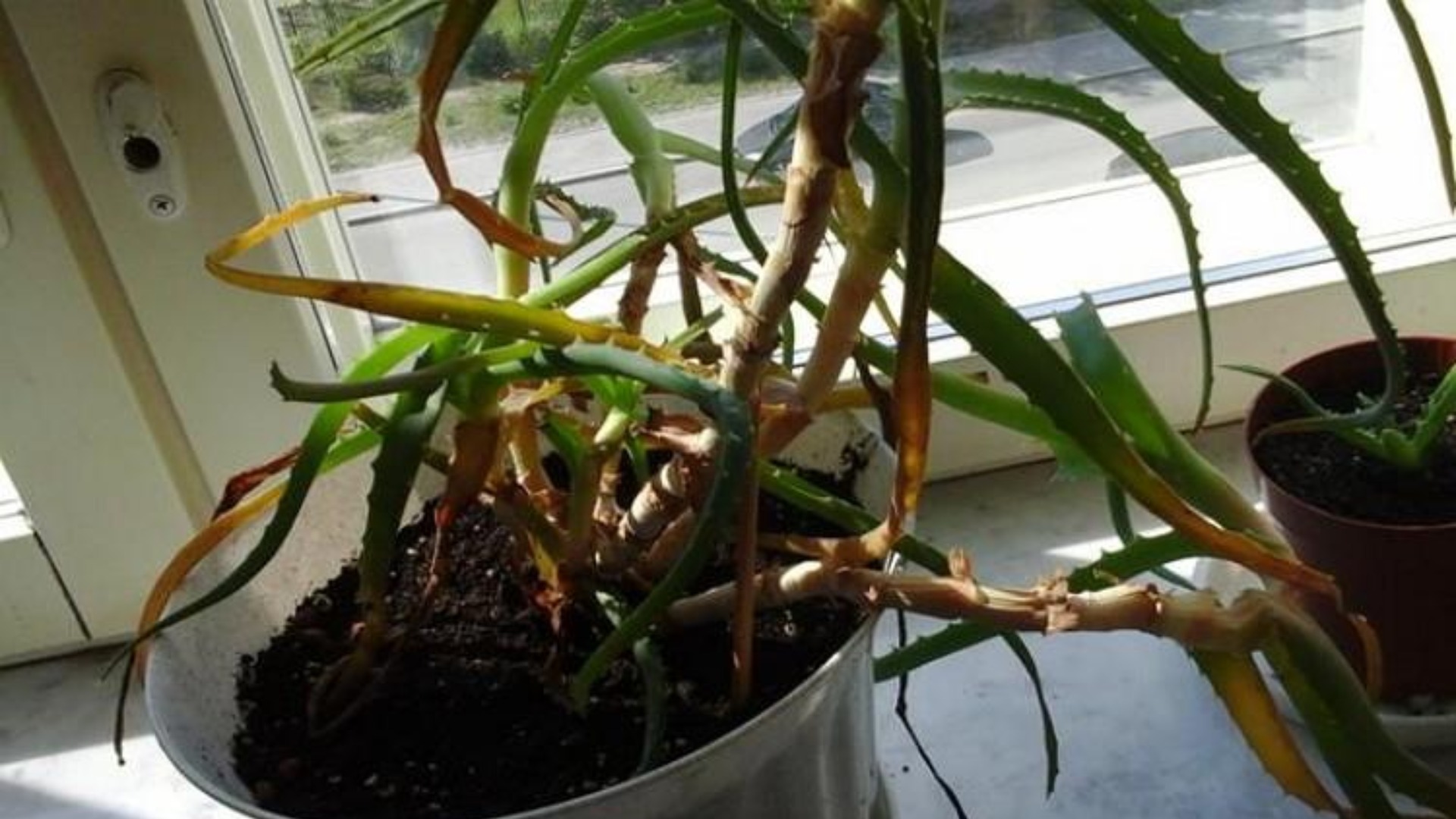 Løvverket kan også bli gult på grunn av aloe sykdom. De vanligste er rot- og tørråte. I begge tilfeller er det karakteristiske tegn som indikerer sykdommen.