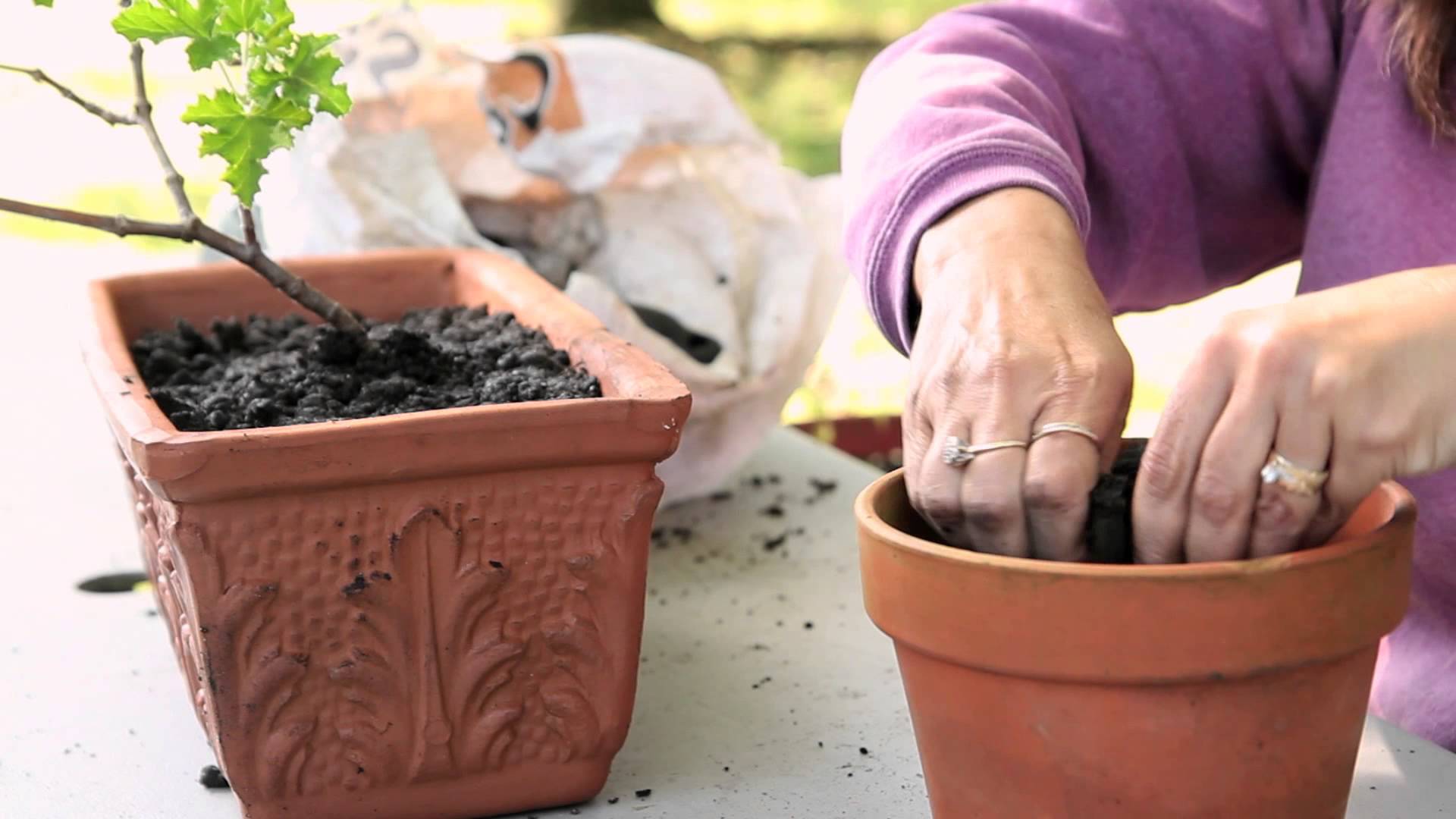 - Plasser en drenering fra grov sand eller pukk i bunnen av potten.