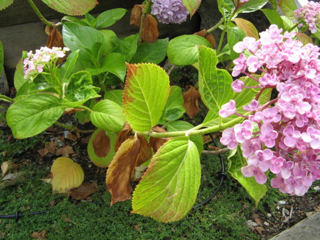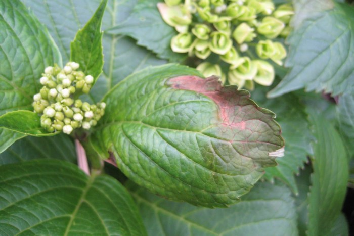 Hortensiasubstratet skal ha en pH på 3-5. En endring i løvfargen kan være forårsaket av en endring i bladverket.
