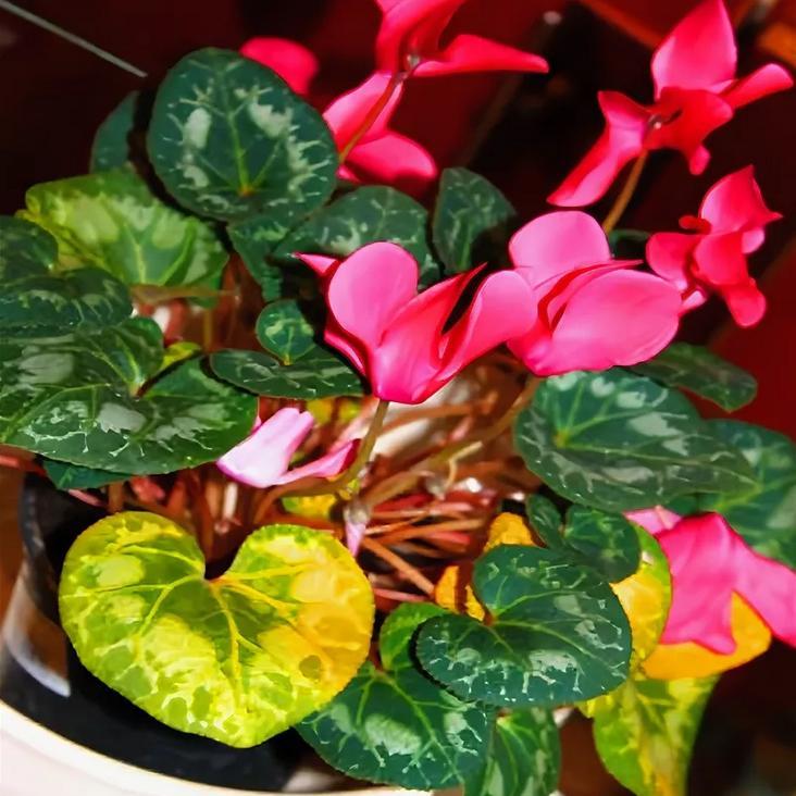 Cyclamens er en slekt av blomstrende urteaktige planter av Primroses-familien. Det andre navnet er Alpine fiolett. Slekten inkluderer 20 arter med varierte blomsterfarger (fra hvit til lilla) og varierende bladmønstre. Hjemme er den vanligste syklamen persisk. Det regnes som en lunefull plante, og det er vanskelig å forstå hvorfor bladene blir gule, blomsten dør eller går inn i det fysiologiske stadiet av dvalen.