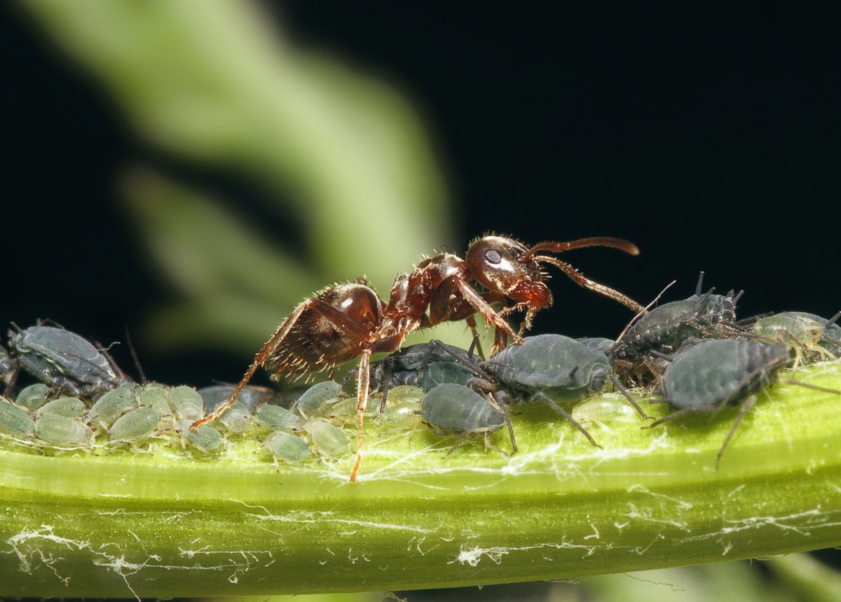 Maur bidrar til aktiv spredning av bladlus. De absorberer den søte sirupen som skadedyrene produserer. Maur reiser bokstavelig talt bladlus og tar vare på eggene sine. De beskytter også kulturen mot andre parasitter og er nær matkilden hele tiden.