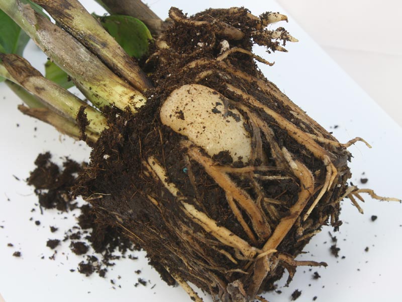 Hvis stilkene blir myke, indikerer dette skade eller forfall av røttene fra vanntett. Hvis mørke flekker vises på de visne bladene, eller de begynner å rynke seg, kan det antas at planten er rammet av råte, som har oppstått på grunn av feil jordvalg eller mangel på dreneringslag. Hullene som vises på bladene indikerer jordforsuring. Blomsten trenger et nytt fruktbart land. I alle de ovennevnte tilfellene kan du ikke klare deg uten transplantasjon.
