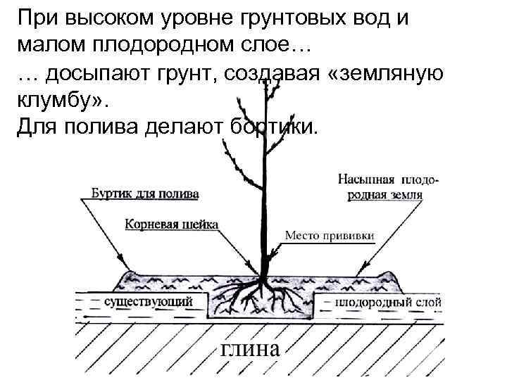 Et riktig valgt plantested lar deg unngå sykdommer i epletreet for å stabilisere immuniteten. Områder med høyt grunnvannsnivå er ikke egnet for å plante frukttrær - i slike soner, i løpet av vårens tining av snø, øker antallet og væskestagnasjon oppstår.