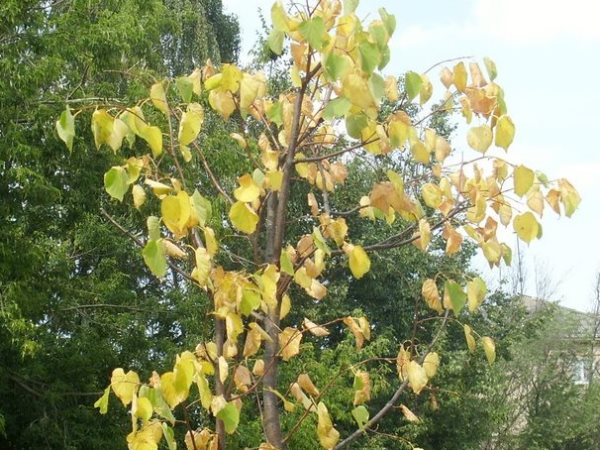 Med en dårlig planting av unge eksemplarer, vises gulhet på løvet, etter en stund begynner de å kaste det.For å unngå problemer er det nødvendig å forberede plantehullet på forhånd, og ikke glem å rette rotsystemet forsiktig når du planter frøplanten.