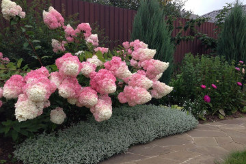 Denne varianten er preget av en delikat delikat aroma, dekorative blomsterstander og frodige blader med en vakker hvit kant. Maksimal høyde på en voksen busk når 7 m. Den er godt formet, takket være hvilken busken kan få forskjellige attraktive former. Dessuten dyrkes denne hortensiaen som en bunndekkende art. Hun er i stand til å krølle seg rundt ristene og støttene. Blomsten er en utmerket honningplante.