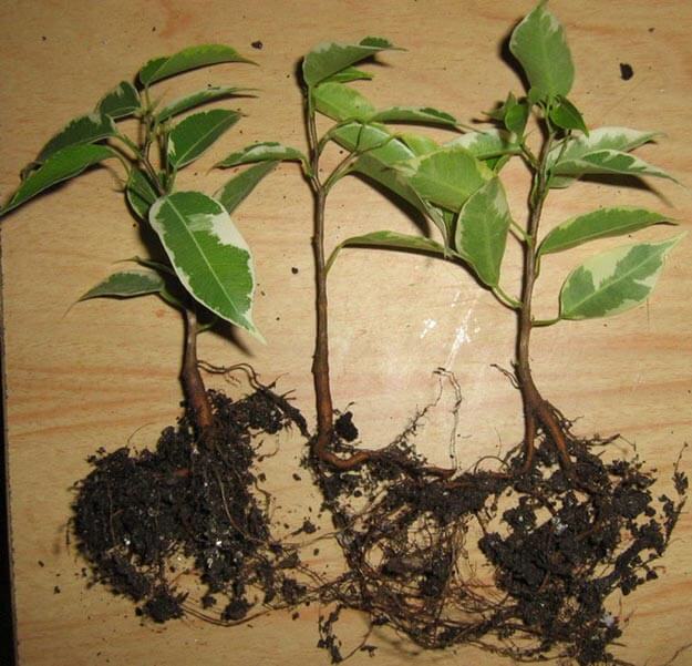 Skuddene er forankret med et luftlag. Trinnvise instruksjoner sørger for betegnelse av ønsket høyde under nyrene, og skape et sirkulært snitt oppover eller fjerne barken under lagdelingen. En fyrstikk plasseres i det resulterende snittet, pakket med en film. Det anbefales å plassere våt mose i polyetylen. Over og under er filmen bundet og etterlater luft inni. Røtter skal vises etter 3 uker. Etter operasjonene er mosen gjengrodd med røtter, toppen er skilt fra hovedfikusen, klar for plassering i en egen gryte.
