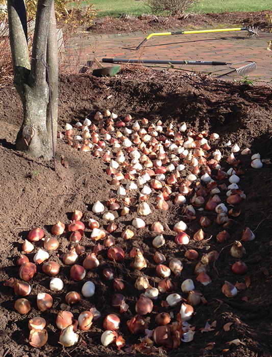 Oktober er egnet for planting i bakken, i kaldere regioner bør dette gjøres i september. Det er viktig for pærene å slå rot i den varme perioden, dette vil hjelpe dem å slå rot, noe som vil sikre en varm vinter og lys blomstring om våren.