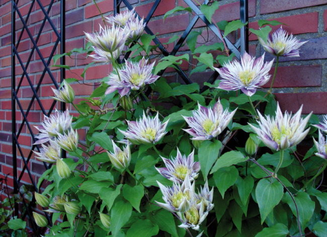 Mange store blomster i lyse farger mot en bakgrunn av frodig grønt, klatringgjerder, ned fra balkonger, svingete langs spalter og støtter - slik ser clematisbusker ut midt i blomstringen. De tilhører de prydplanter som fagfolk i landskapsdesign gjerne bruker i kunsten sin, og amatørgartnere - for å dekorere deres personlige tomt.