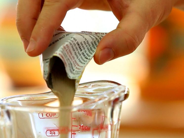 - Gjødsel, i henhold til instruksjonene, fortynnes i vann, som skal være minst 26-30 grader.