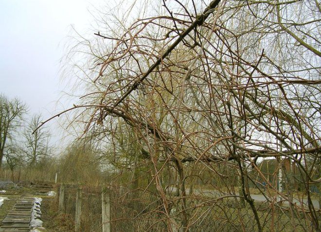 Samtidig skilles gamle, ødelagte, tørkede skudd. I tillegg er det behov for å fjerne slike vinstokker som tykner kronen.