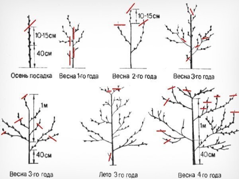 Beskjæring gjøres med skarpe beskjærere, kuttet er gjort i en vinkel på 45 grader. Alle skudd er avskåret med 30%, med unntak av skjelettgrener, kan de ikke berøres.