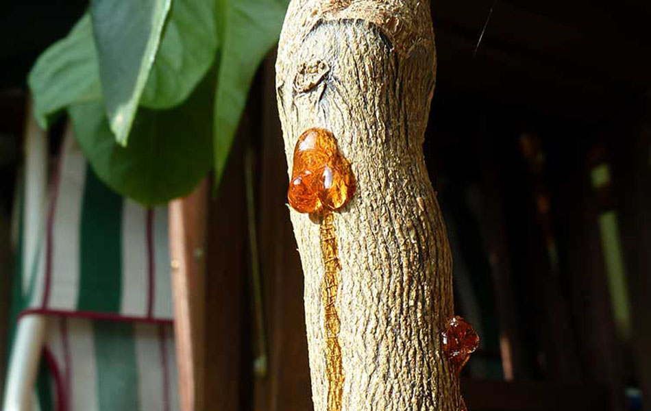 - tannkjøttfjerning (utseende av væske fra såret på grenene og stammen);