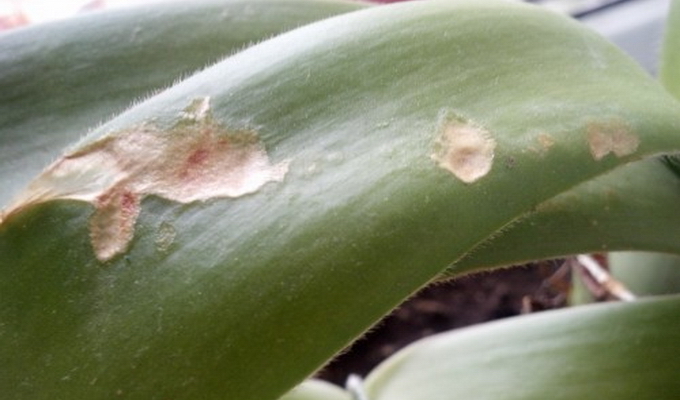 Hvis bladene på en blomst har blitt lette og begynte å strekke seg ut, betyr dette at den er dårlig opplyst. Den må flyttes til et lysere sted. Hvite prikker finnes på bladene. Naturen til utseendet er forskjellig: konsekvensene av sprøyting og forbrenning fra direkte sollys. Det er nødvendig å eliminere disse årsakene.