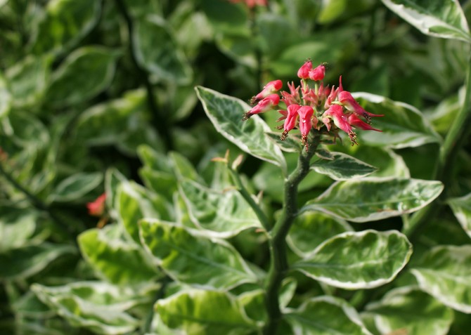 Et eksempel på en busk med grønne og hvite blader er pedilanthus. Denne planten er innfødt i tropene og subtropene, derfor tåler den ikke vinteren godt. Men kompleks pleie av denne busken er ikke nødvendig. Høyden på planten er 2 meter, tykkelsen på grenene er 1-1,5 cm.