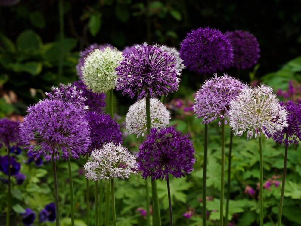 Allium er en upretensiøs blomst som passer perfekt inn i enhver blomsterhage. De rundhodede og bøyde (ville) løksortene, på grunn av sin moderate stammehøyde på 50-60 cm, er egnet for å dekorere hagestier. Den bulgarske varianten kan plantes langs en skjemmende hekk, som den vil dekorere med sine meter høye stengler og blomster med unike farger som spenner fra grønt til burgunder med en hvit kant rundt kantene.