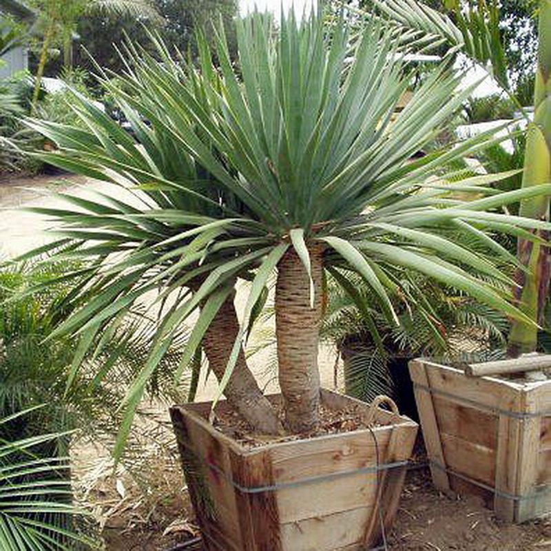 De tykke koffertene til deremsky dracaena er tett løvrike.