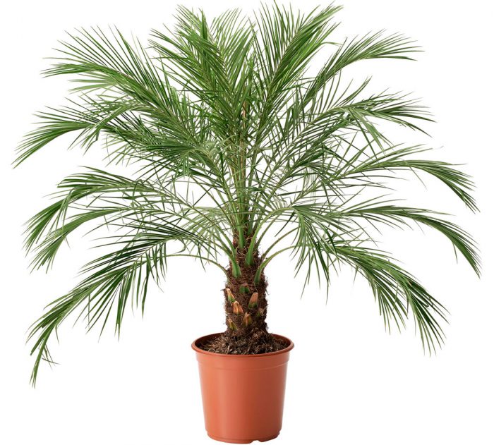 Følgende typer daddelpalmer dyrkes oftest innendørs: