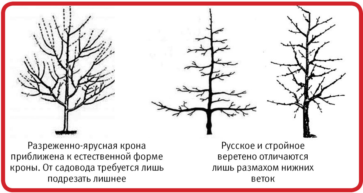 En gartner må jobbe flittig med å bringe kronen i ønsket form ikke mer enn 4-5 år. Så snart denne milepælen er overvunnet, må han bare periodisk beskjære ung vekst, noe som ikke er vanskelig. Men selve prosedyren i den innledende fasen (fra ombordstigningstidspunktet) kan forårsake forvirring. Noen trær er bundet til en trellis, andre er dverg eller halvdverg (for eksempel President-sorten). Dette må tas i betraktning både under planting og under påfølgende beskjæring.