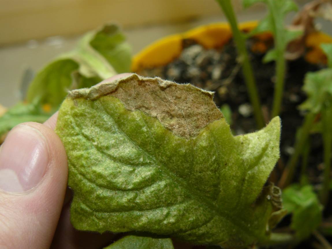 Noen ganger oppstår et slikt problem på grunn av mangel på kalsium i jorden eller på grunn av utilstrekkelig luftfuktighet. Fôring skal gjøres med et kalsiumholdig preparat, åpne beholdere med vann skal plasseres nær gerbera.