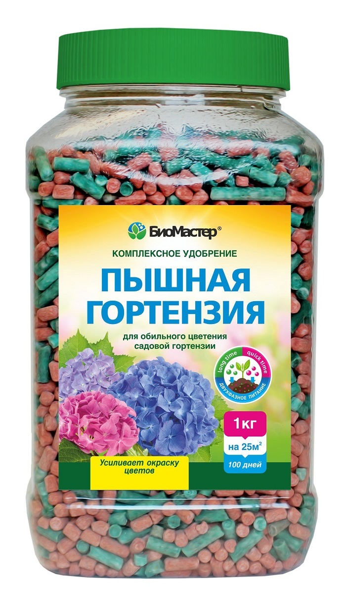 Røttene til den rosa damen hortensia er nær overflaten, så de kan ikke få maten fra bakken. Derfor må den dekorative busken forsynes i god tid med både organisk materiale og mineraler. Du må mate planten 4 ganger i året, og påføre en rekke gjødsel i jorden. Måltider utføres i henhold til følgende ordning: