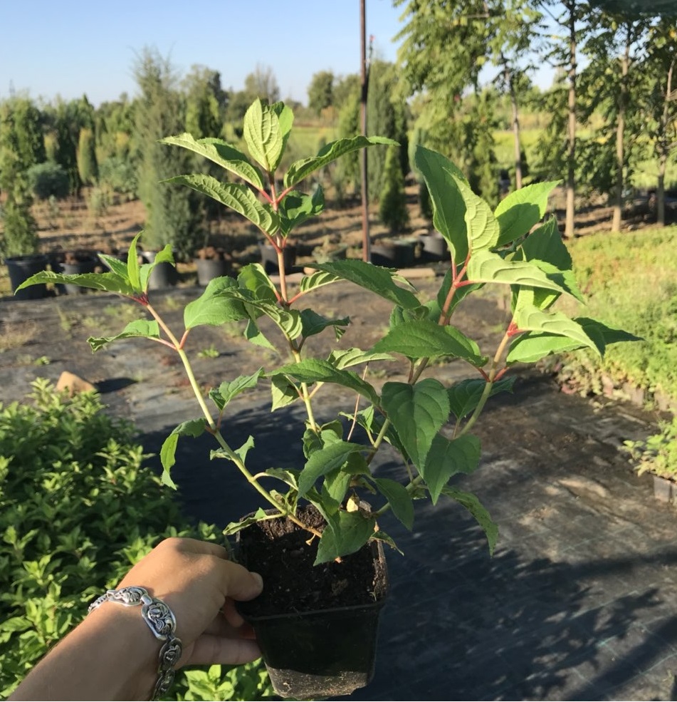 Etter det må du forberede plantemateriale kjøpt fra en spesialforretning eller hagebruk. Vanligvis selges den i containere, røttene er dekket i bakken. Hvis frøplanten er sunn, bør det ikke være skade, sprekker eller flekker på den unge barken. Det er bedre å plante en ung hortensia ikke eldre enn 5 år. Planten skal ikke ha mer enn 4-5 knopper.