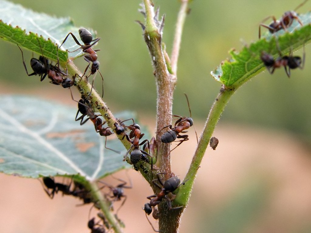 - Bladlus. En spesiell væske frigjøres fra kroppene til disse skadedyrene, som er en favoritt delikatesse hos maur. I denne forbindelse har insekter en slags symbiose: maur spiser væsken som bladlus slipper ut, og til gjengjeld beskytter de og fremmer reproduksjon.