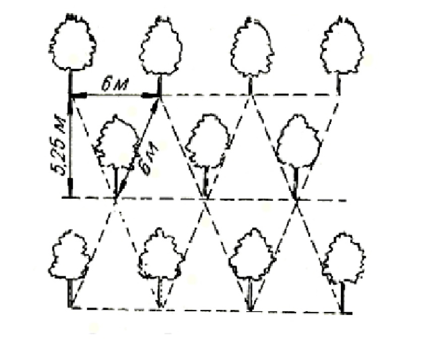 For å dyrke en sunn frukthage er det nødvendig å tenke på en planteordning på forhånd, med tanke på tresorter. Eksperter anbefaler å plassere frøplanter i rader i et rutemønster.