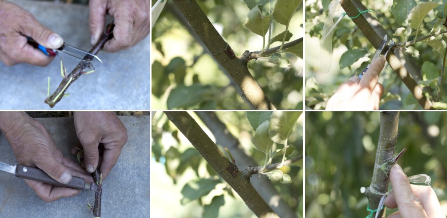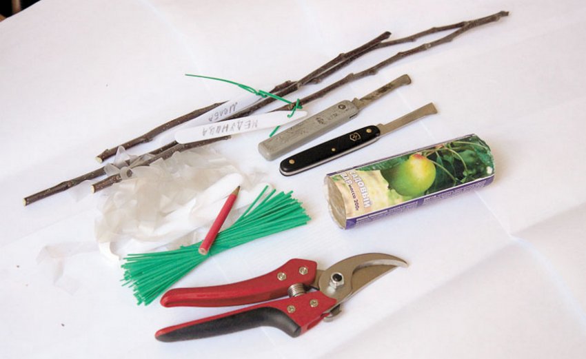 Sommer spirende av et epletre skjer ved bruk av visse verktøy og materialer: