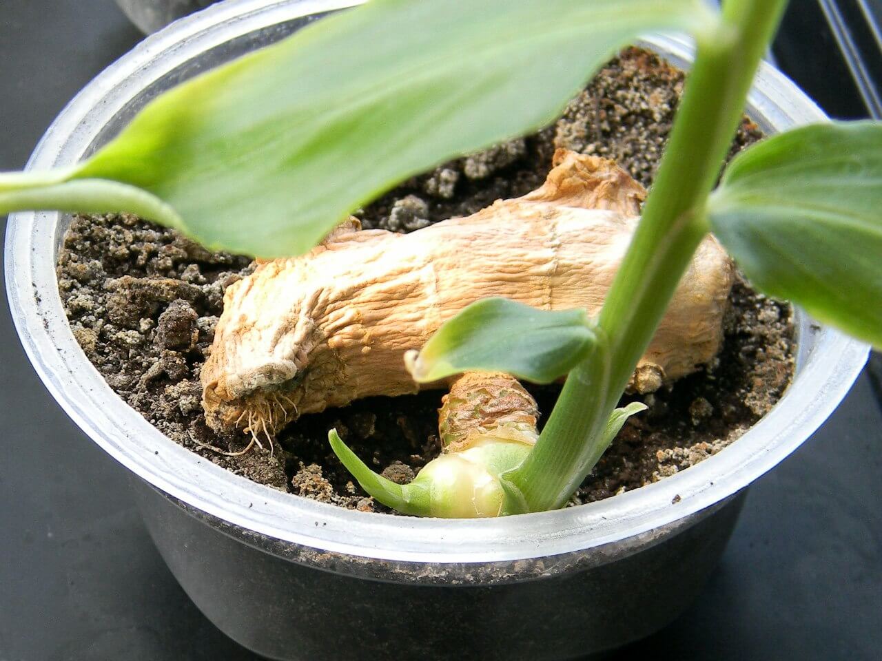 Etter desinfeksjon blir plantematerialet plassert i bakken, og den første dynamikken i planteutviklingen vil bli merkbar på to måneder. På dette tidspunktet begynner gartnere å mistenke at de ikke vil være i stand til å dyrke et tre. For å akselerere veksten, bør knoppene vekkes før planting. Denne prosessen varer fra 3 dager til 2 uker. Hvor vokser ingefær? Det er to metoder for å spire spirer - i vann og i rå mose.