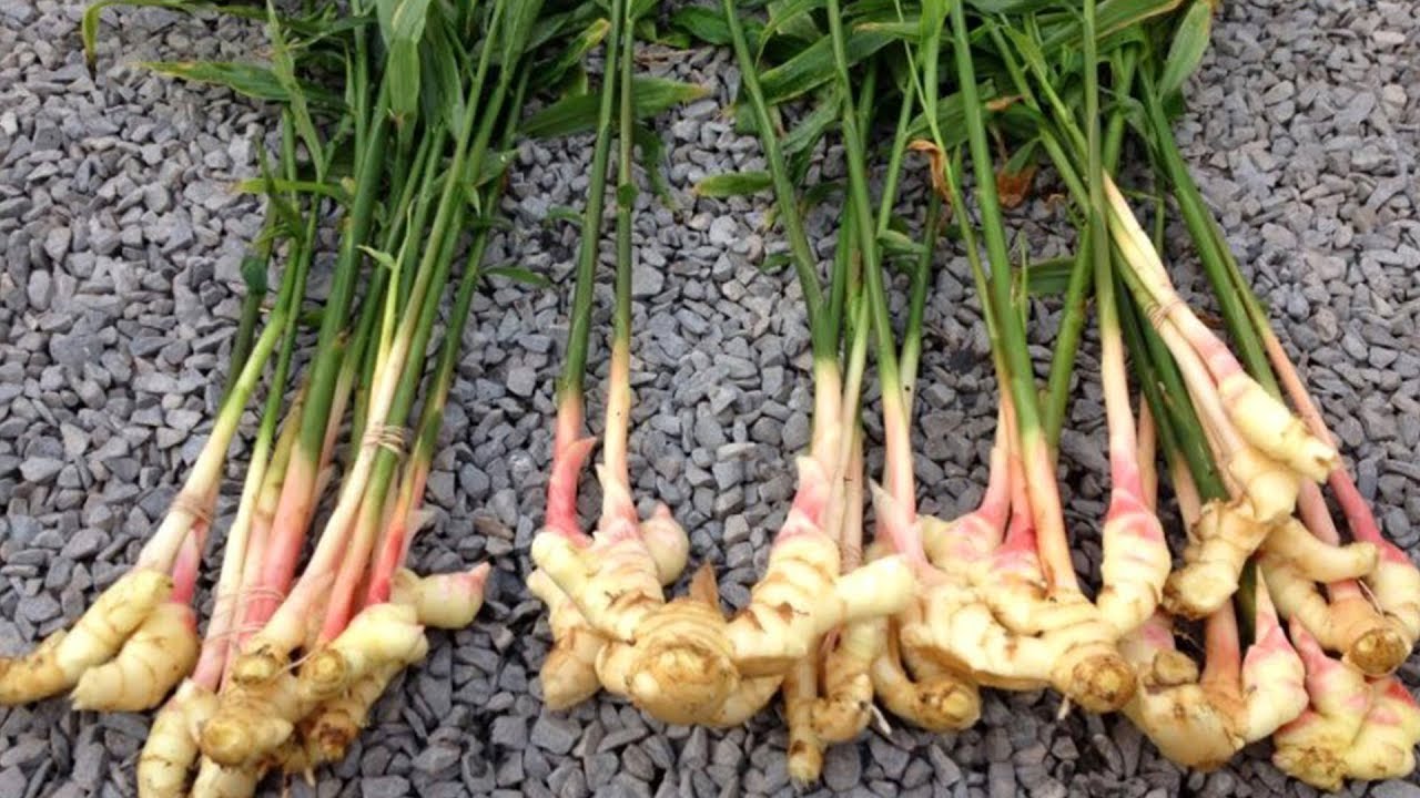 Når krydderet vokser til 20 cm, er det nødvendig å bore. Det gjøres igjen etter 10 dager. For å beskytte ingefæren dannes en baldakin, fuktes med varmt vann og befruktes med en tyggeløsning. 2 måneder før høsting tilsettes en kaliumgjødsel. Høstingen utføres på slutten av sommeren med delvis gulnet løvverk. Vanning stoppes 10 dager før graving, og røttene som fjernes fra jorden rengjøres og tørkes.