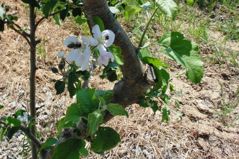 Epletrær er blant artene som krever pollinering av bier. Bare i dette tilfellet vil innhøstingen bli oppnådd. For hver hektar planting kreves 2-3 store elveblest.