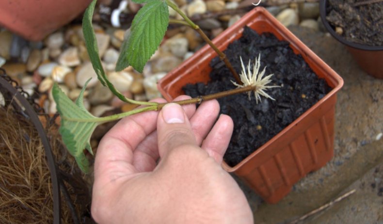 Skjæringen plantes i en blanding av torv og sand. Spissen er fordypet med 1-2 cm i en vinkel. Deretter dekkes det med en gjennomsiktig hette og holdes ved en temperatur på omtrent 27-30 ° C. Deretter heves hetten 3-4 ganger om dagen for å spraye viburnum med varmt vann.